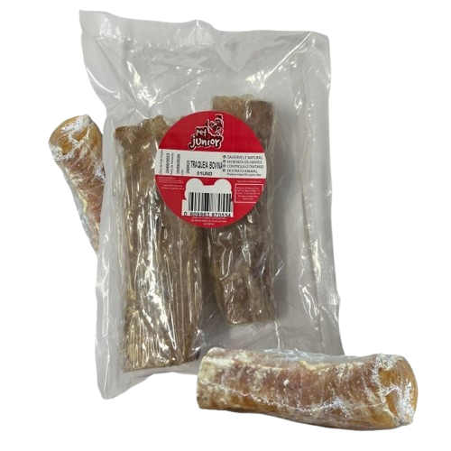 Traqueia bovina selecionada, livre de corantes e aromatizantes artificiais, 100% natural e nutritiva, garantindo sabor, saúde e bem-estar para cães de todos os portes.