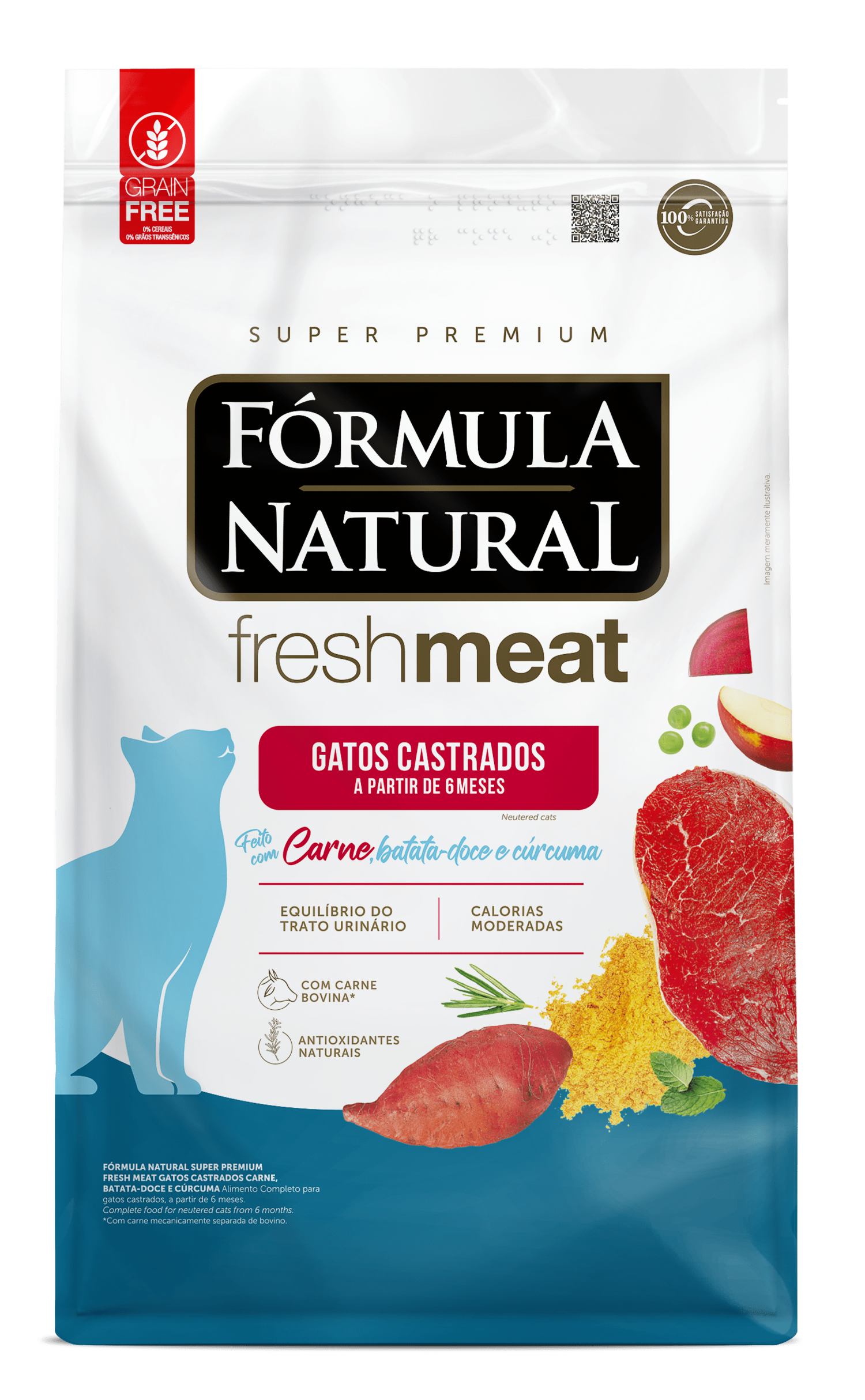 Desenvolvida por médicos veterinários, a linha Fórmula Natural Fresh Meat utiliza os conceitos mais avançados da nutrição de cães e gatos. Naturalmente saborosa e nutritiva, possui como grande diferencial a utilização de carne fresca e fontes especiais de carboidratos, fibras, vitaminas e minerais, como as frutas e vegetais. É uma linha completa que oferece versões com cuidados específicos para diferentes necessidades e estágios de vida. Fórmula Natural Fresh Meat Gatos Castrados Sabor Carne oferece um teor menor de calorias e mais fibras para gatos adultos castrados.