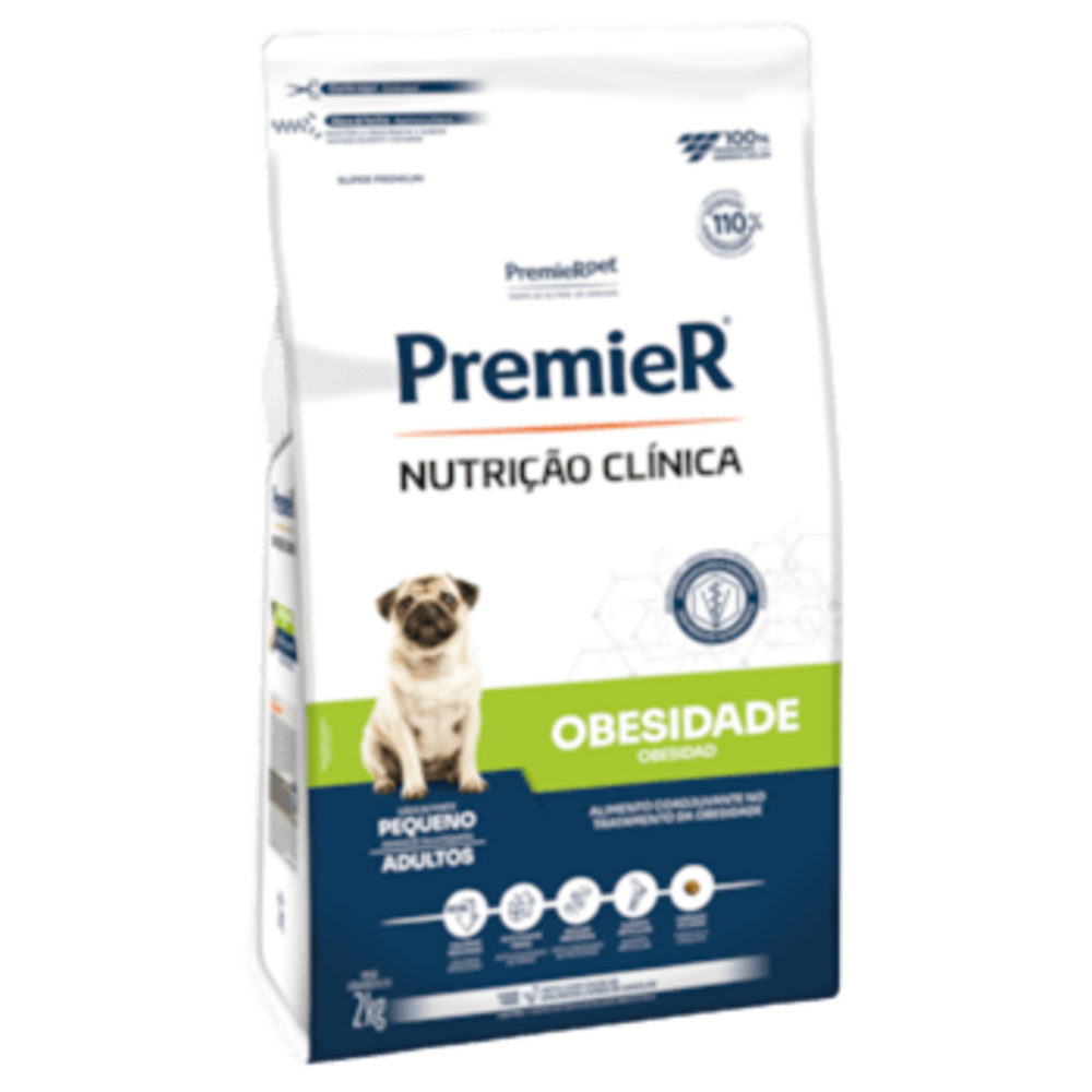 PremieR® Nutrição Clínica Cães Obesidade é um alimento auxiliar ao tratamento da obesidade em cães adultos de porte pequeno. Além do tratamento prescrito pelo médico veterinário, a alteração na alimentação é fator primordial para o tratamento da obesidade. Os objetivos da dieta são: promover perda de peso efetiva e saudável, com manutenção da massa magra e suporte articular. Para obesidade, este alimento deve ser utilizado sob orientação e prescrição de um profissional, até que o animal atinja o peso ideal.